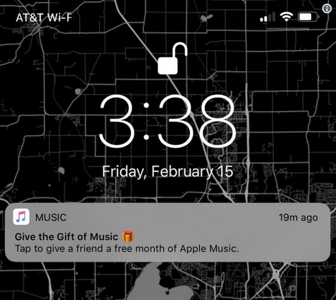 Obecnie wysyła powiadomienia o możliwości podarowania przyjacielowi bezpłatnego, miesięcznego dostępu do usługi Apple Music. Po kliknięciu w powiadomienie, otworzy się specjalna witryna, gdzie możesz wysłać zaproszenie do znajomego, który nigdy nie korzystał z usługi.