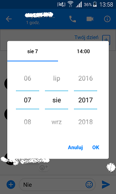 W komunikatorze pojawiła się opcja planowania, która pozwala ustawić powiadomienie dla uczestników konwersacji i wysłać im wiadomość z przypomnieniem o zaplanowanym wydarzeni. Wyraz „nie” jest podkreślany z bardzo prostego powodu, ponieważ jest skrótem od dnia tygodnia jakim jest niedziela. to samo będzie w przypadku soboty, czwartku, czy poniedziałku. Po kliknięciu na dane słowo otworzy nam się okno z datą, która oznacza najbliższy dzień tygodnia.