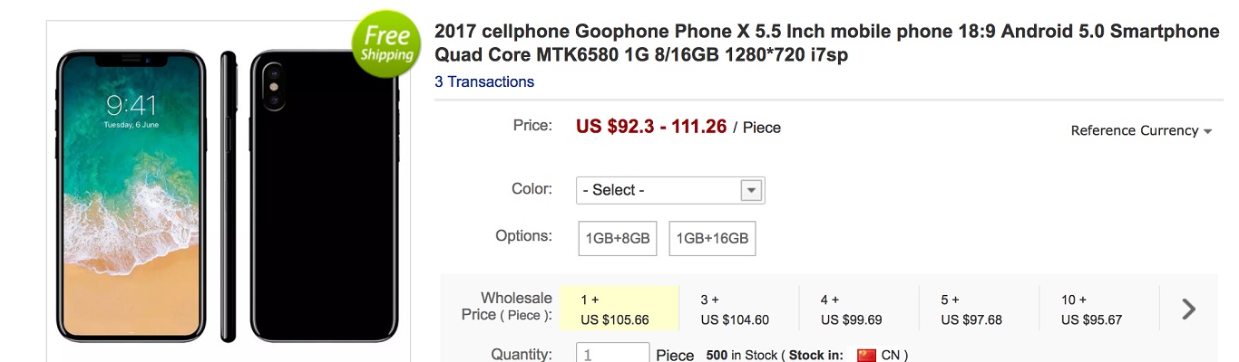 Goophone nie zamierza jednak zejść ze sceny pokonanym i nadal działa i stosuje swoje niecne sztuczki. Zaledwie dzień po konferencji Apple na chińskim rynku pojawił się GooPhone X, czyli klon iPhone X. Podobnie jak w przypadku poprzednich urządzeń GooPhone, GooPhone X jest podobny wizualnie do nowego iPhone’a X. Posiada on ekran od krawędzi do krawędzi o rozmiarach 5.5 cala i działa na Androidzie 5.0.