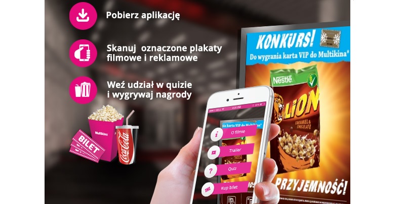 Z aplikacją Multiworld przy najbliższej wizycie w kinie zeskanuj plakat reklamowy, aby dowiedzieć się więcej o kampanii oraz wziąć udział w konkursie. Do wygrania są m. in. nagrody rzeczowe, bilety czy zestawy z popcornem.