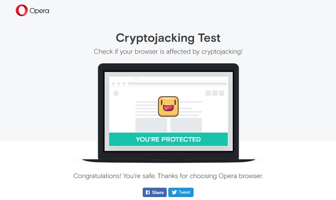 Skrypty kopiące kryptowaluty mogą wykorzystać nawet 100 procent zasobów urządzenia, a to może doprowadzić do szybszego rozładowania baterii oraz przegrania się telefonu. Samemu możesz nie dostrzec, czy twoje urządzenie jest narażone na kopanie Bitcoinów przez inne osób. Dlatego też Opera pozwala sprawdzić za pomocą strony www.cryptojackingtest.com. Wystarczy tylko na nią wejść ze swojego smartonu lub z komputera.