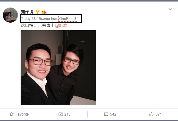 Zdjęcie zrobione przednim aparatem OnePlus 3 opublikował na portalu Weibo współzałożyciel firmy – Liu Zuohu. Nie oceniajmy go jednak zbyt surowo, ponieważ jest to pojedyncze zdjęcie zrobione w słabym oświetleniu. Jest to także poddane jakiejś edycji – posiada znak wodny i nie ma żadnych danych EXIF, więc nie pochodzi ono prosto z aparatu.