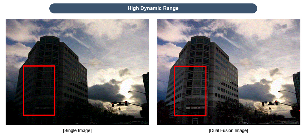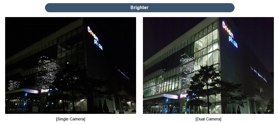 Pierwszą z funkcji ma być Super Night Shot. Porównanie pokazuje, jak wygląda obraz zrobiony jednym aparatem oraz jak drugi aparat jest wykorzystywany w celu poprawy wyników. Fotografia jest wyraźniejsza oraz bardziej doświetlona.