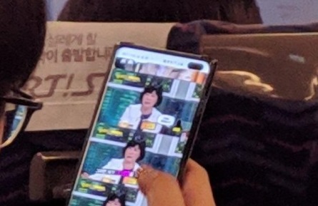 Zdjęcie przedstawia smartfon w specjalnej obudowie i zostało ono wykonane prawdopodobnie w komunikacji miejskiej w Suwon, gdzie znajdują się kluczowe obiekty Samsunga.