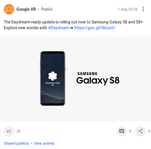 Google zapowiedziało właśnie, że wsparcie dla Daydream w przypadku flagowych Galaxy S8 i S8 + jest właśnie wdrażane. Informacja został przekazana w formie postu na Google+ z oficjalnego konta Google VR.