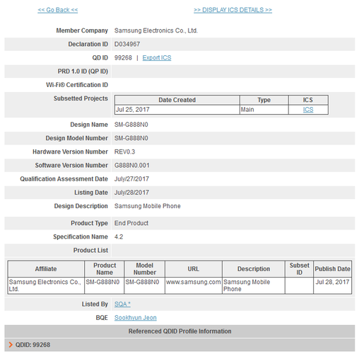 Od zeszłego roku mówi się o składanym smartfonie od Samsunga, którym podobno ma nazywać się Galaxy X. Teraz,prawdopodobnie otrzymał on certyfikat Bluetooth z Bluetooth SIG. Zanim jednak zaczniemy dalsze spekulację, należy zaznaczyć, że certyfikat otrzymało urządzenie o numerze modelu SM-G888N0. Numer ten nie odpowiada żadnemu znanemu smartfonowi oraz takiemu, którego możemy się spodziewać od Samsunga.