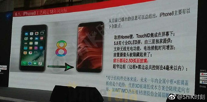 W Shenzhen odbyła się mobilna konferencja, a na jednej z prezentacji można było dostrzec bardzo ciekawy slajd. Przedstawia on iPhone 8, ale może to być oczywiście tylko obraz poglądowy.