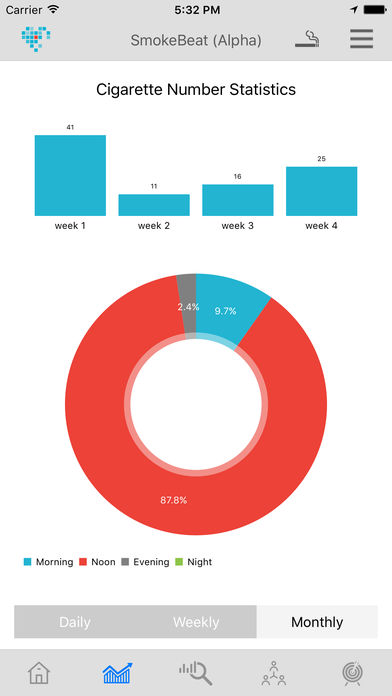 Firma Somatix z wykorzystaniem smartwatcha jest w stanie określić ile papierosów dziennie wypalimy. Algorytm jest w stanie rozróżnić czy ktoś chciał się podrapać po głowie, będzie coś jadł, czy po prostu pali papierosa (lub coś innego). Zegarek wysyła dane do aplikacji, która dostarcza istotne informacje. Mówi ile użytkownik spalił papierosów w danych czasie, ile go to kosztowało i czy przestrzega założonego planu. Aplikacja wysyła powiadomienia zachęcające i dotyczące naginania planu.