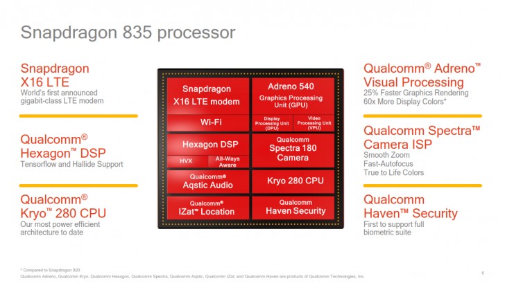 Nowy układ wykorzystuje tę samą architekturę procesora Kryo, które widzieliśmy w przypadku Snapdragona 820 i 821. Jednak w Kryo 280 znajdziemy 4 dodatkowe rdzenie, które mają pozwolić na pracę na wysokich obrotach z wysoką wydajnością i maksymalnym taktowaniem zegara 2.45GHz, gdzie poprzednie wersje miały 1.9 GHz. Ponadto, SD 835 jest o około 35% mniejszy oraz zużywa 25% mniej energii, co przekłada się na lepszą żywotność baterii.