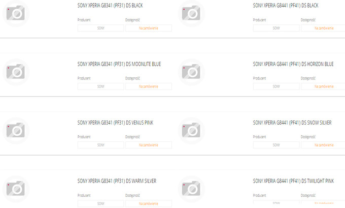 Model G8341, według tego sprzedawcy ma kosztować 3206,99 złotych i będzie oferowany w kolorze czarnym, niebieskim, różowym i srebrnym. Z kolei G8441 kosztować ma 2749,99 zł i ma być dostępny w tych samych kolorach. Spekuluje się, że mogą to być odpowiednio modele Xperia XZ1 oraz Xperia XZ1 Compact.