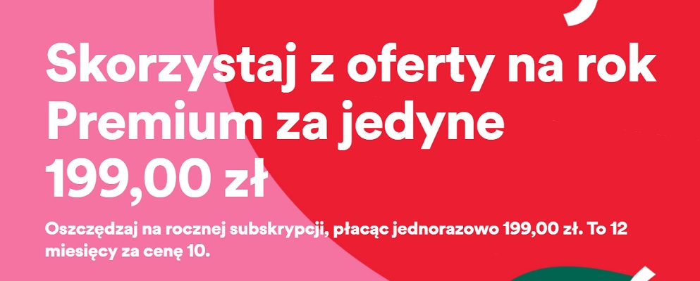 Promocja potrwa jedynie do końca roku i do tego czasu będzie można wykupić cały rok Spotify Premium za 200 złotych. Dostępna jest dla obecnych subskrybentów jak i dla nowych użytkowników.