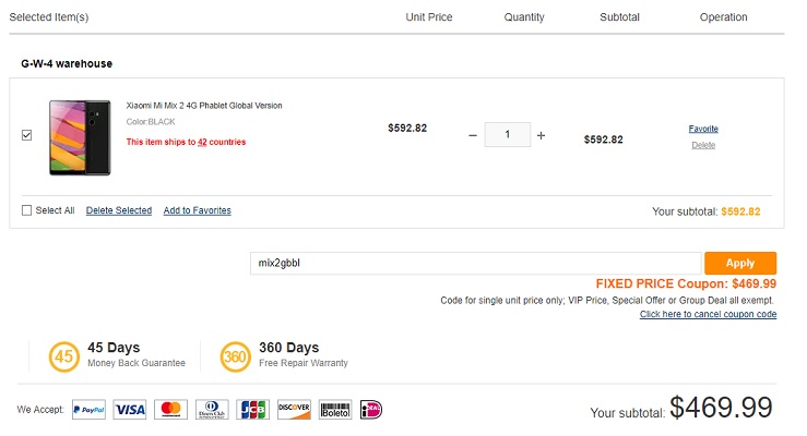 Dziś jedna w świetnej promocji możemy dostać Xiaomi Mi Mix 2, a więc stosunkowo świeży telefon, który posiada parametry godne każdego obecnego flagowca. Z kodem mix2gbbl w sklepie Gearbest jest on dostępny za 469,99$, a więc około 1 565 złotych. Dodatkowo wysyłka z Polski sprawia, że nie będziemy musieli uiszczać dodatkowych opłat w postaci VAT-u. W oficjalnej dystrybucji w naszym kraju kosztuje on obecnie co najmniej 2 200 zł. Jest to wersja Global z pasmem LTE B20.