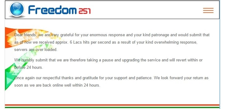 Dziś w Indiach ruszyła sprzedaż Freedom 251, czyli telefonu za niecałe 4 dolary. Nikt nie spodziewał się aż takiego sukcesu i zainteresowania. Jak podaje firma Ringing Bells stronę gdzie można było zamówić smartfon odziewało 600 tysięcy ludzi na sekundę. Taki ruch zmusił firmę do zawieszenia sprzedaży i powrót za około 24 godziny.