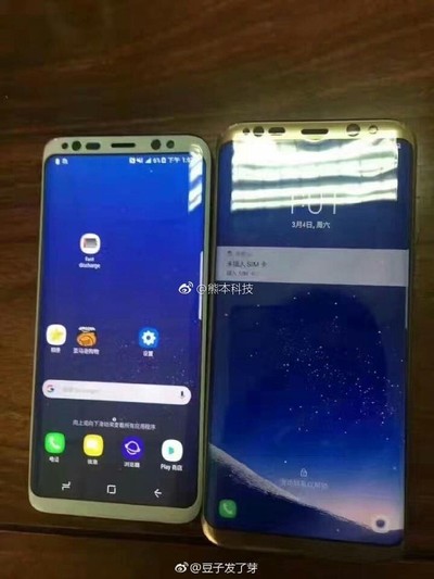 Zarówno mniejszy 5.8-calowy Samsung Galaxy S8 jak i 6.2-calowy Galaxy S8+ będą miały zakrzywione obustronnie ekrany. Mimo tak ogromnych wyświetlaczy nie będą one większe od swoich konkurentów. Na zdjęciu widzimy złotego Galaxy S8+ z zablokowanym ekranem. Obok niego na jednym ze zdjęć widzimy Galaxy S8, które pokazuje nam różnicę rozmiarów pomiędzy oboma modelami.